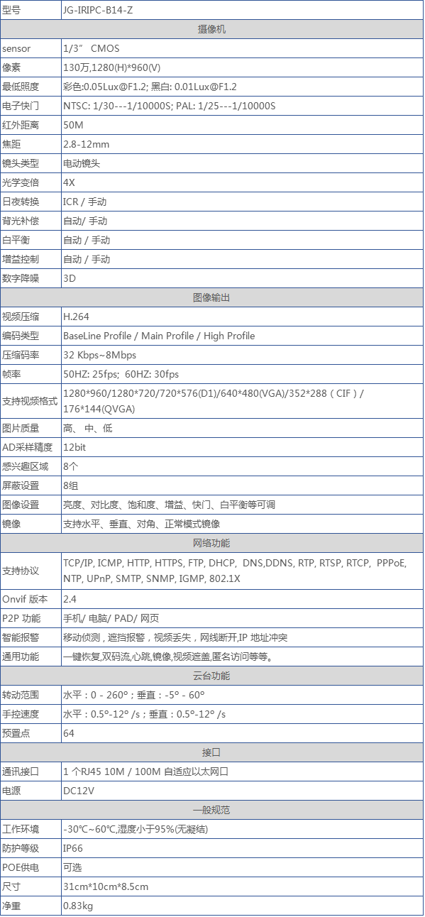 預(yù)置位速度0.5°~12°/ s,支持64個(gè)預(yù)置位