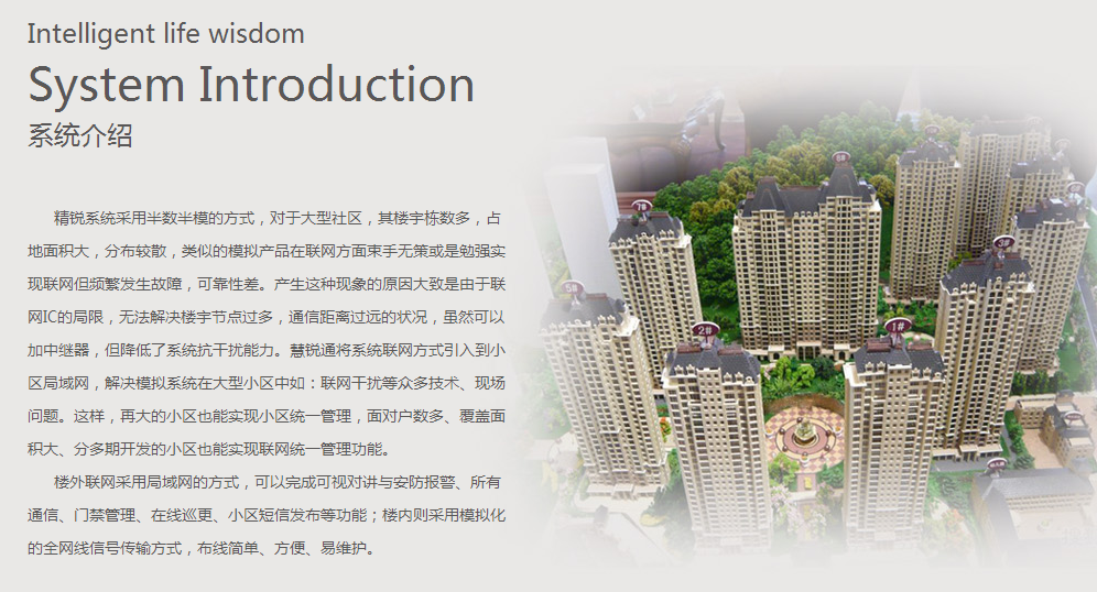 集智能樓宇系統(tǒng)、智能家居系統(tǒng)、智能停車場系統(tǒng)、智慧園區(qū)生活系統(tǒng)為一體的智慧園區(qū)系統(tǒng)服務(wù)解決方案提供商。公司服務(wù)于全球20多個國家,目前在國內(nèi)已成立50多家銷售服務(wù)網(wǎng)點,為各大地產(chǎn)商客戶7000多個項目提供了創(chuàng)新技術(shù)與系統(tǒng)解決方案。公司成立于2001年,并于2007年被評為中國名牌。